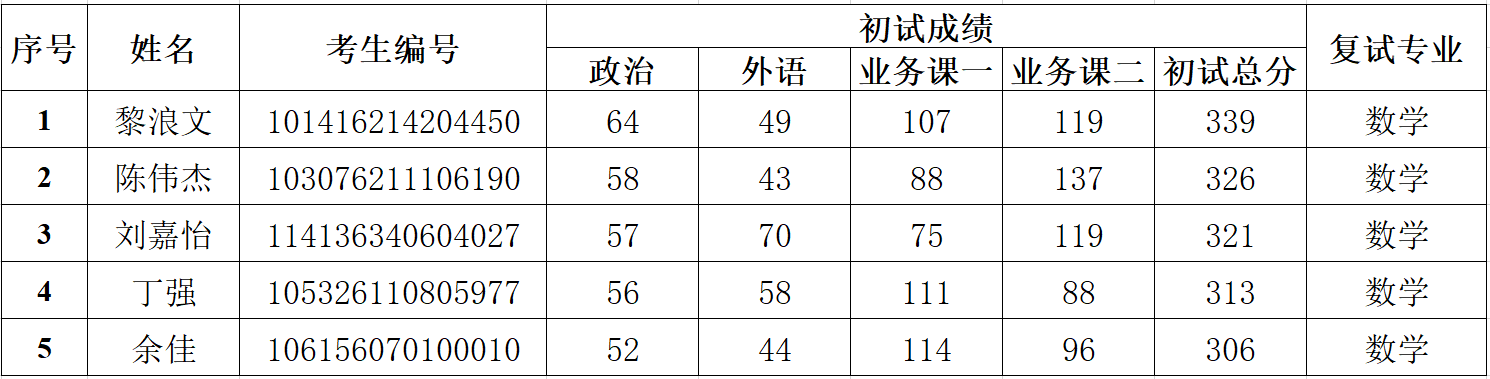 理学院2026年硕士研究生拟录取名单公示11(数学)【已结束】