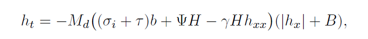 where the unknown function h is the height of grain boundary from reference line, \sigma_i is the stress due to the elastic interaction between disconnections based on their dislocation nature, defined by